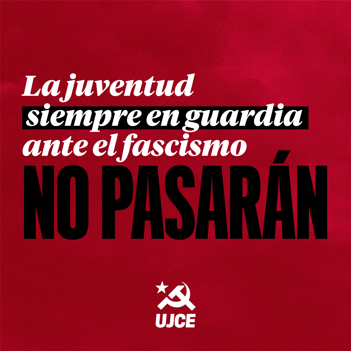 Desde la UJCE mostramos nuestro más absoluto rechazo a la exaltación al fascismo. Es por eso que seguimos luchando por la República y el Socialismo. Sólo una juventud fuerte, organizada y antifascista puede hacerles frente. Hoy y siempre: ¡No pasarán!